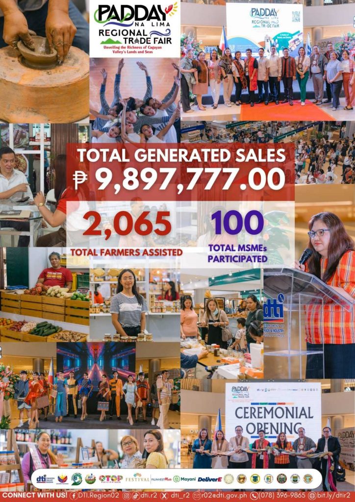 This year’s theme, “Unveiling the Richness of Cagayan Valley’s Lands and Seas: A Fusion of Beauty and Bounty,” brought together 100 MSMEs and local artisans and assisted 2,065 farmers featuring the unique products, services, and vast offerings of Cagayan Valley that reached a total of PHP 9,897,777 for booked, cash, and under-negotiation sales, both physically and digitally through Mayani.ph and paddaynalima.com powered by Deliver-E.