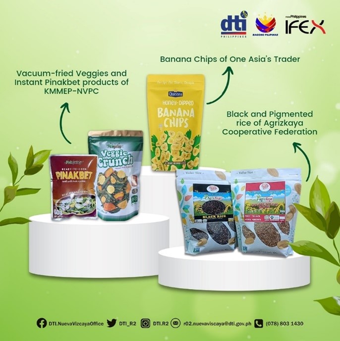 Aside from One Vizcaya, three MSMEs and/or certified and export-ready products from the province are also set to take center stage at the said event. These are the banana chips of One Asia’s Trader, black and pigmented rice of Agrizkaya Cooperative Federation, and the vacuum-fried veggies and instant pinakbet products of Kaagapay ng mga Magsasaka, Mangangalakal at Exeperto sa Pagpoproseso – Nueva Vizcaya Producers Cooperative (KMMEP-NVPC).