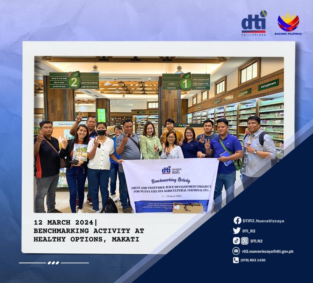 In a collaborative effort, the Department of Trade and Industry (DTI) Region 2, the Department of Agriculture (DA) Regional Field Office 02, and Nueva Vizcaya Agricultural Terminal, Inc. (NVAT) initiated a three-day benchmarking activity for the Juice Processing Development Project on 12-14 March 2024.