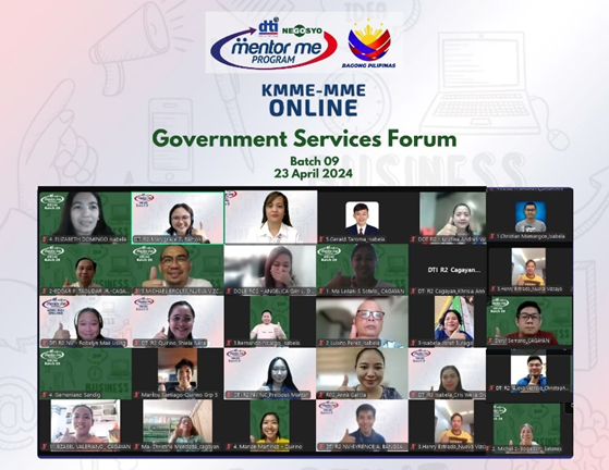Following the completion of the ten modules of the Kapatid Mentor ME-Money Market Encounter (KMME-MME) program of the Department of Trade and Industry (DTI) Region 2 in partnership with the Philippine Center for Entrepreneurship-Go Negosyo, the 48 mentees from Region 2 were provided with a special bonus session entitled, Government Services Forum on 23 April 2024 via Zoom.