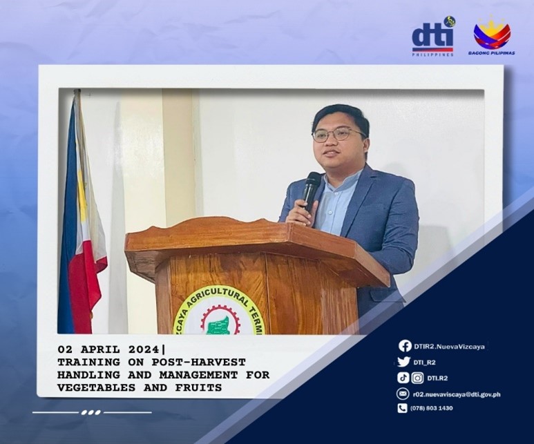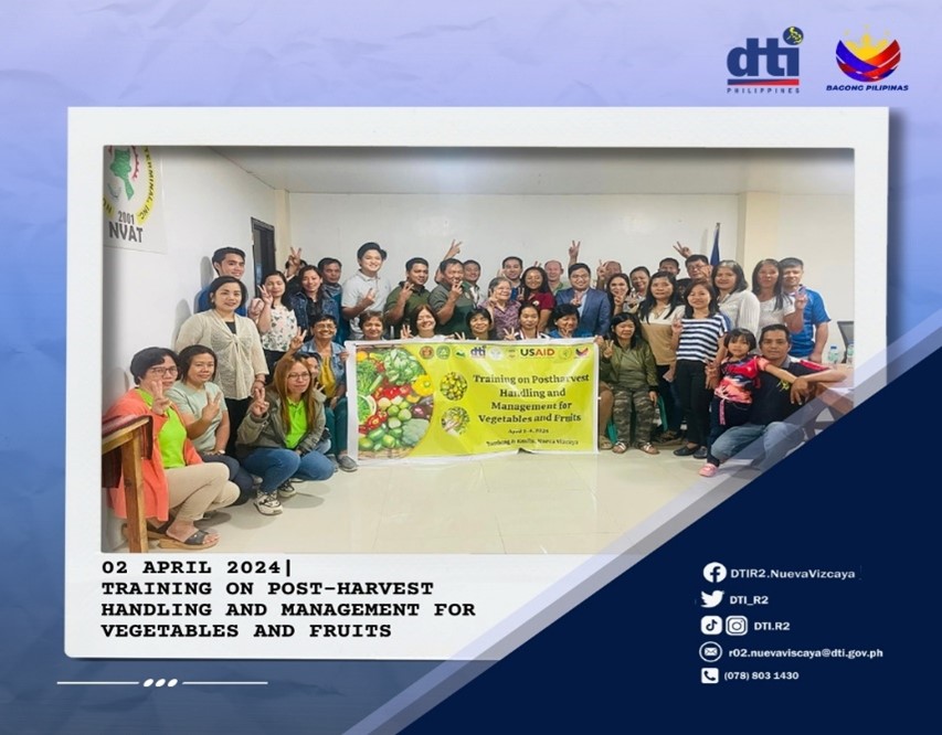 NUEVA VIZCAYA — The DTI R2 Nueva Vizcaya Provincial Office led by Provincial Director Atty. Michael B. Paggabao took a huge step in addressing agricultural losses in the province through the conduct of a Training on Postharvest Handling and Management for Fruits and Vegetables on 02-04 April 2024 at Bambang and Kasibu, Nueva Vizcaya.