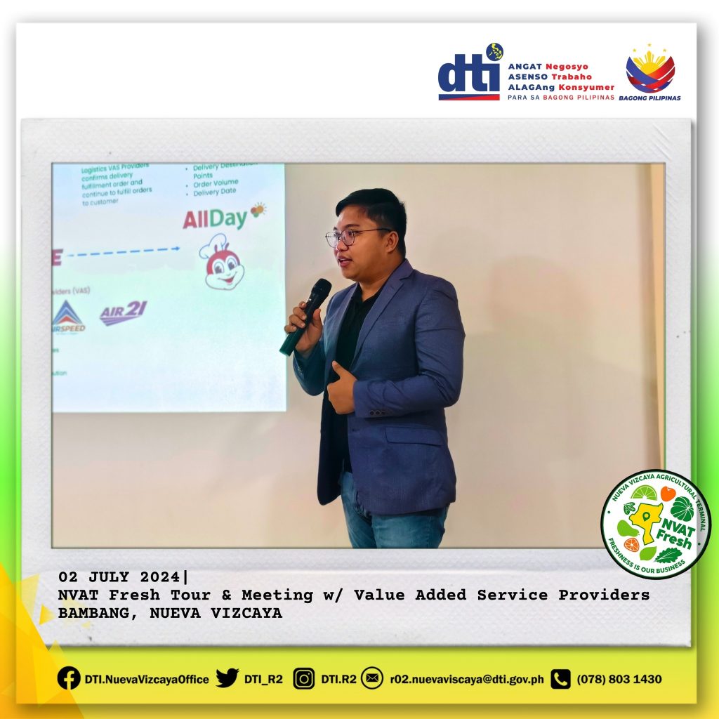 Bambang, Nueva Vizcaya — As part of the three-year strategic plan and continuous efforts to improve the NVAT Fresh Online Platform, the DTI – Digital Philippines Group led by Undersecretary Mary Jean T. Pacheco, in collaboration with USAID-SPEED, Insight SCS, and the Nueva Vizcaya Agricultural Terminal (NVAT) Inc., conducted an onboarding session for the Value Added Service Providers, particularly Ninja Van Philippines, Agro-Digital PH, Airspeed, and Air21 on 2 July 2024 at Bambang, Nueva Vizcaya.
