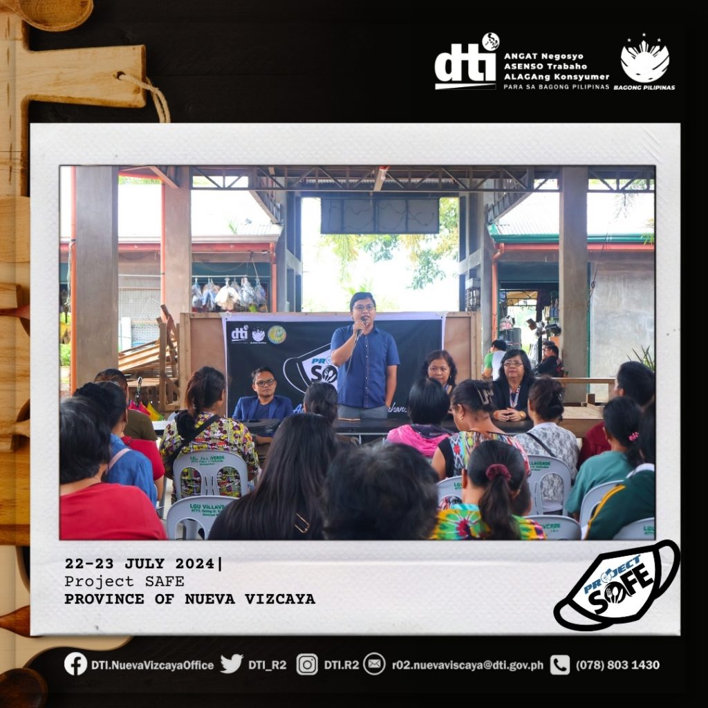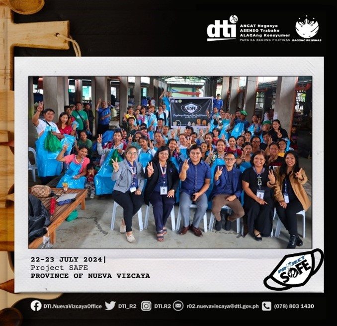 Continuing its mission to enhance food safety and elevate the local economy, the Department of Trade and Industry (DTI) R2 Nueva Vizcaya Provincial Office, led by Provincial Director Atty. Michael B. Paggabao rolled out the awarding of food safety kits under Project SAFE (Strengthening Advocacy on Food safety Enhancement by providing personal protective equipment to micro and small enterprises) in the municipalities of Bayombong, Solano, Bagabag, and Villaverde on 22-23 July 2024.