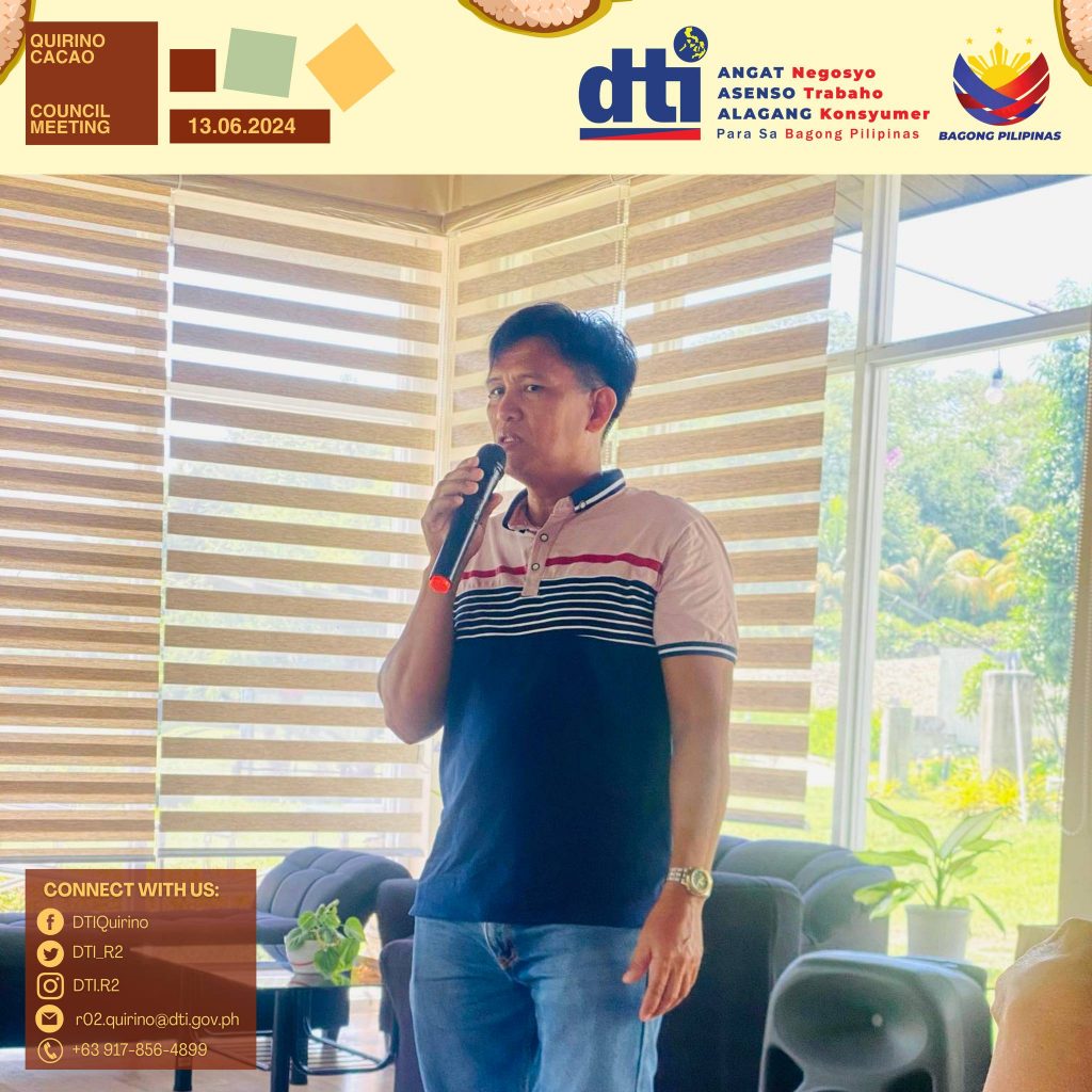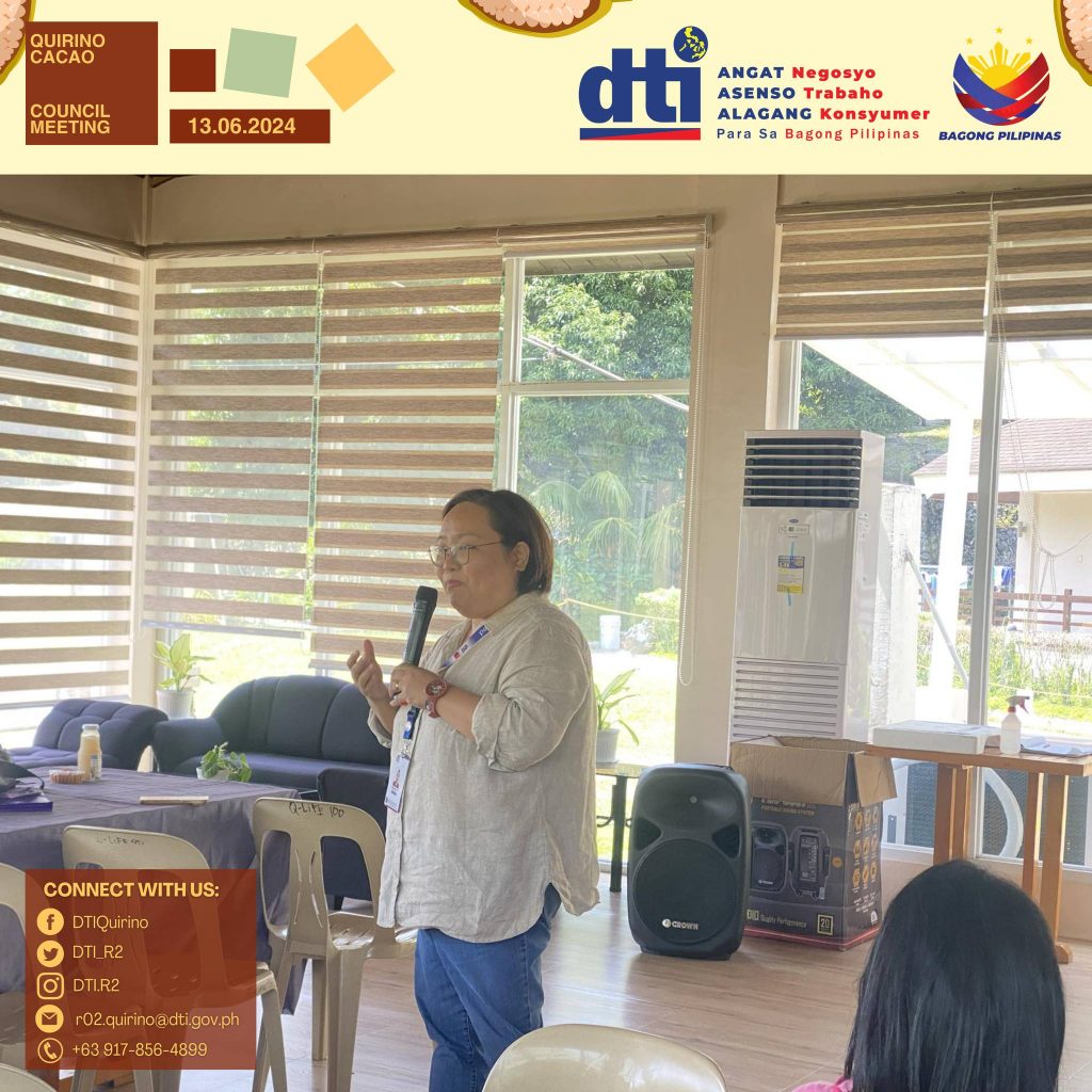 The Cacao Stakeholders Meeting was facilitated by the Provincial Government of Quirino – Office of Provincial Agriculturist, spearheaded by Provincial Agriculturist, Ms. Florence Mangoba, in collaboration with the Department of Trade and Industry R2 – Quirino, led by Provincial Director Mary Ann Corpuz-Dy.