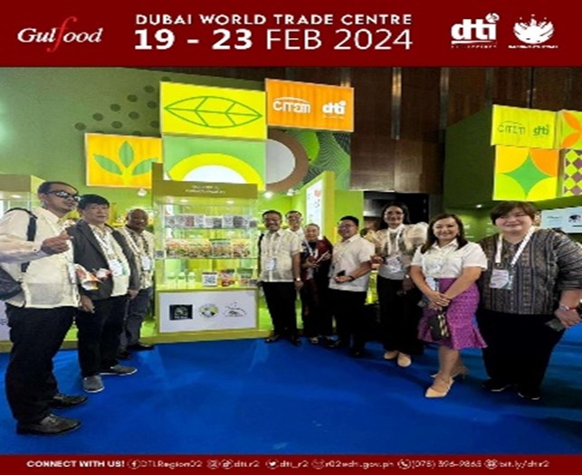 Opportunities unfold for Cagayan Valley Region as it ventures into the Middle East market, bannering its export-quality halal-certified food products at the ongoing Gulfood trade show in Dubai. Products from Cagayan Valley are generating new market leads and recording million-dollar sales from international buyers attending the show, considered as the largest annual food & beverage trade show in the Arab region, happening at the Dubai World Trade Centre until 23 February 2024.