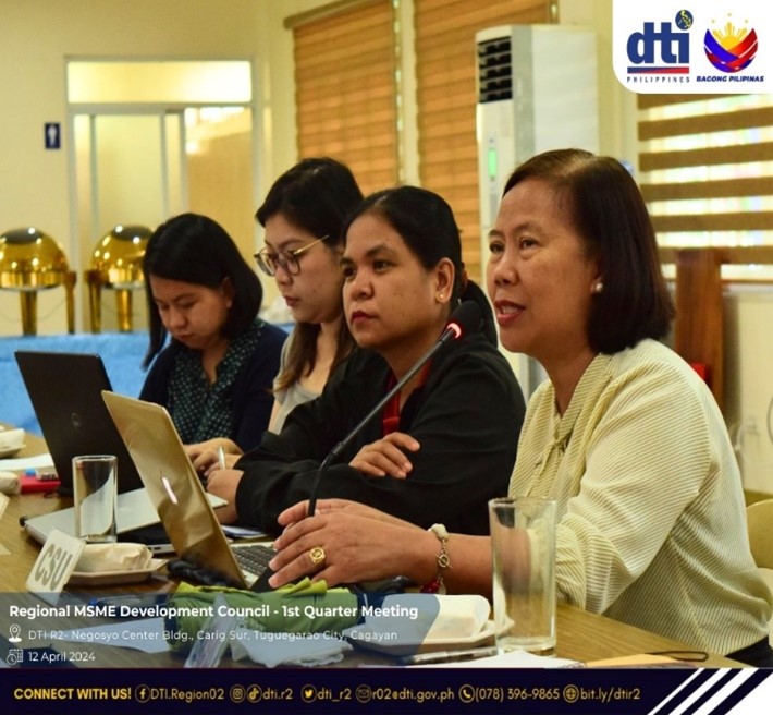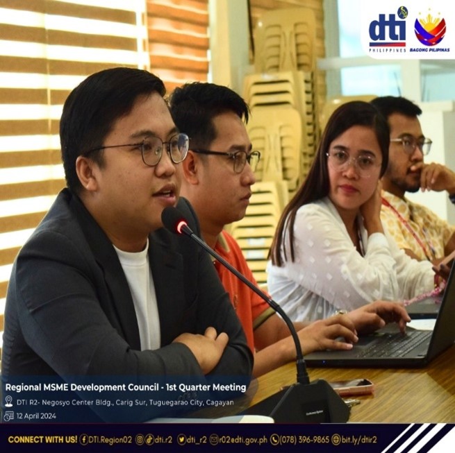 The Department of Trade and Industry (DTI) Region 2 gathered the members of the Regional MSME Development Council, coming from the different Regional Line Agencies (RLAs), the MSME and private sectors, the academe, and other relevant stakeholders, to lay down their priority Programs, Activities, and Projects (PAPs) for MSMEs through the 1st Quarter RMSMED Council meeting held at the DTI R2 Negosyo Center Hall on 12 April 2024.