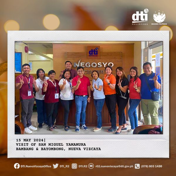 The said visit was a result of the continuous market linkage of DTI, particularly the Supply Chain and Logistics Wholesale and Retail Trade Office led by Regional Operations Group Undersecretary Mary Jean Pacheco and DTI Region 2 led by Regional Director Leah Pulido Ocampo. Also present in the said activity were CTIDS Lenore Lee S. Lopez and TIDS Silvester Miguel from DTI; Ms. Anna Ledesma, Mr. Manley Miranda, Mr. Renzon Palardon, Ms. Aerell Ann Lestino, Ms. Denise Cadiz and Ms. Leanne Tan from SMYPC; and Ms. Realyn Castillo, Ms.Lailani C. Binbinon, Mr. Julio Basilian and some Marketing Department Staff from NVAT. ♦