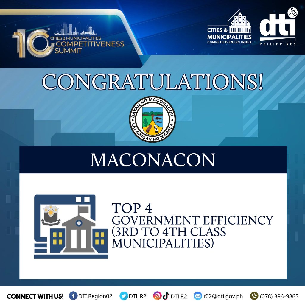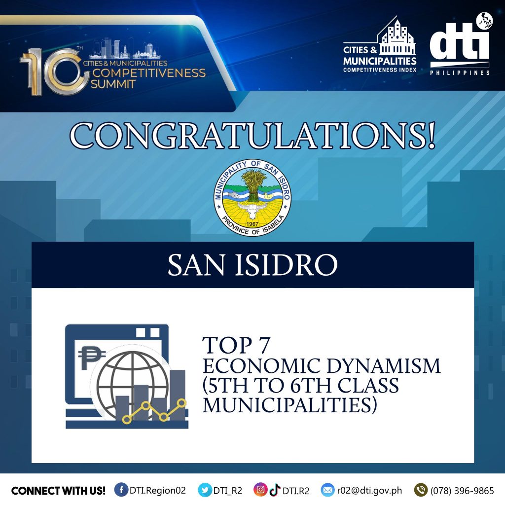 The Department of Trade and Industry Region 2 (DTI R2) applauds Local Government Units from Cagayan Valley Region that made it to the top 10 in this year’s Cities and Municipalities Competitiveness Index (CMCI) Awarding Ceremony during the 10th Cities and Municipalities Competitiveness Summit (CMCS) on 20 October 2022 at the Philippine International Convention Center, Pasay City, and via Facebook Live.