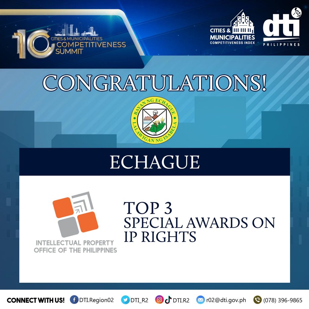 Echague, Isabela was also awarded as Top 3 in the Special Awards on IP Rights under the Municipalities category.