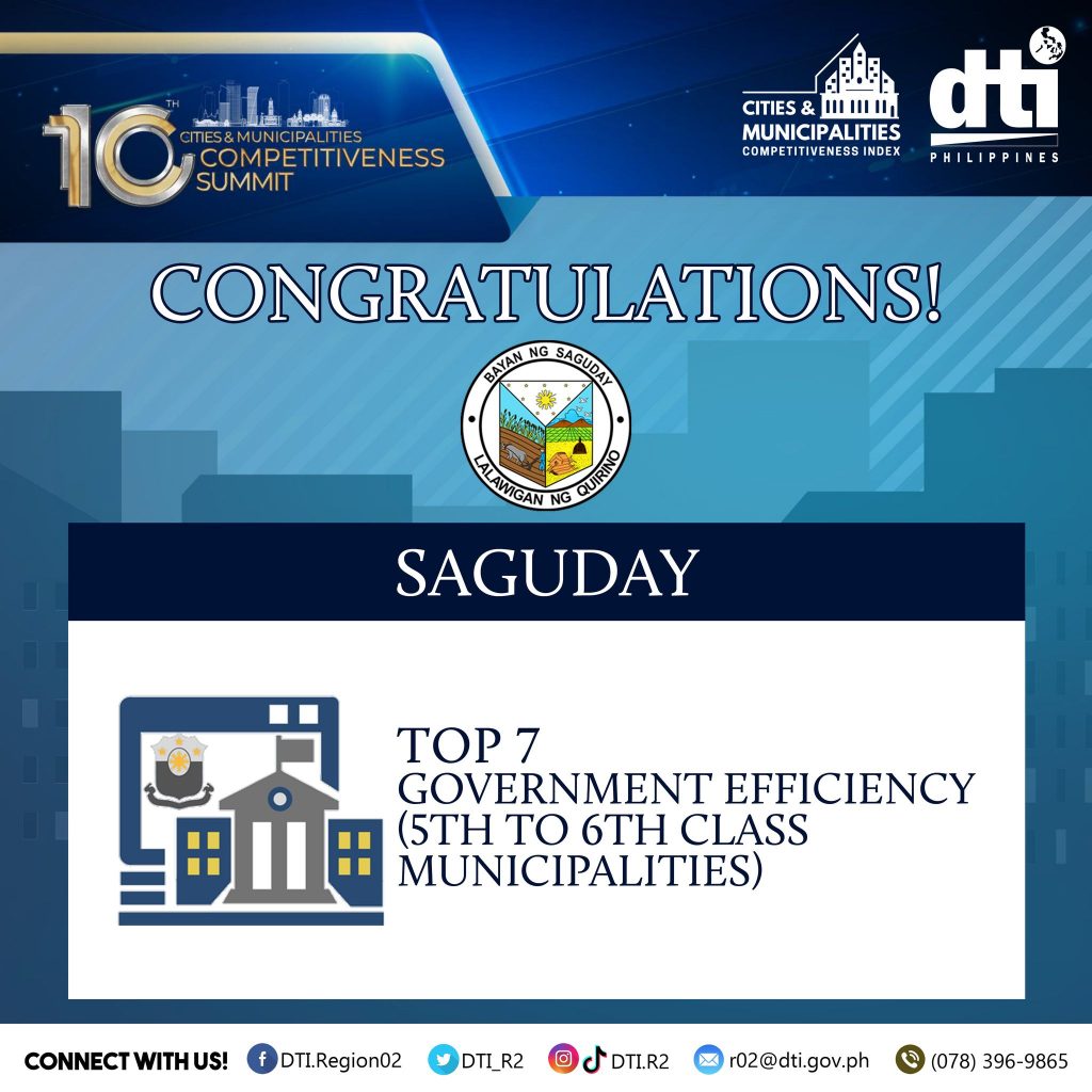 Furthermore, DTI R2 will be recognizing the LGUs during the 6th Cagayan Valley Regional Competitiveness Forum and 2022 CMCI Awarding Ceremony at the upcoming Padday na Lima Trade Fair. #