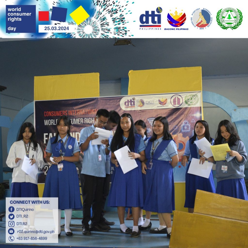 In a bid to address the growing concerns surrounding the ethical use of Artificial Intelligence (AI) in consumer affairs, the Department of Trade and Industry (DTI) Region 2- Quirino Provincial Office, in partnership with, the Department of information and Communications Technology (DICT) – Quirino, conducted a forum held on 25 March 2024 at Saint Mary’s Academy (SMA) – Andres Bonifacio, Diffun, Quirino.