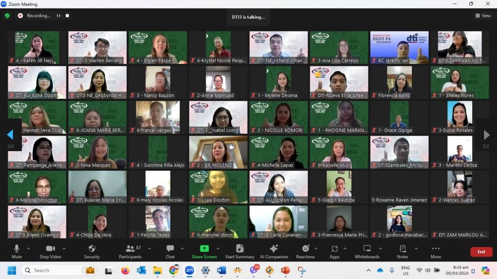 SAN FERNANDO CITY, PAMPANGA – The Department of Trade and Industry Regional Office 3 has virtually launched the first batch of this year’s Kapatid Mentor Me Enterprise – Money Market Encounter (KMME-MME) program on April 5.