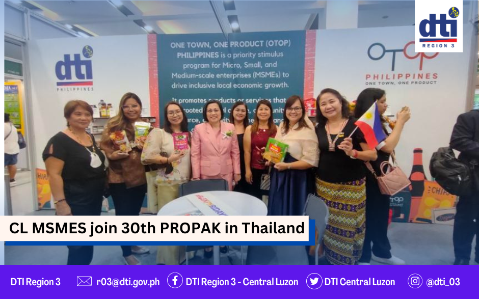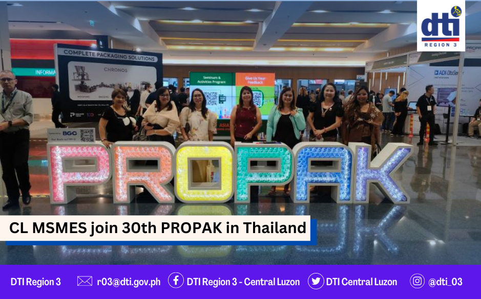 SAN FERNANDO, PAMPANGA – Twelve (12) Micro Small and Medium Enterprises (MSMEs) from Region 3 participated in the Propak Asia 2023 Expo in Thailand on June 14-17, 2023.