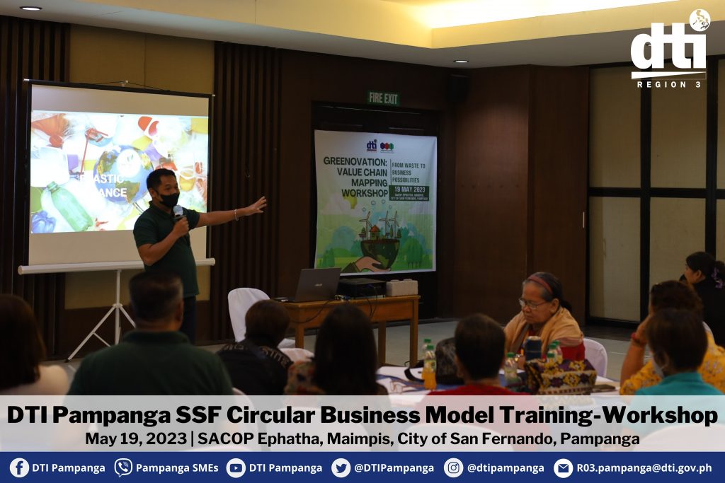 SAN FERNANDO CITY, PAMPANGA – DTI Pampanga conducted a provincial Greenovation Workshop on Circular Business Model for 74 Shared Service Facility (SSF) Cooperators and MSMEs on May 19, 2023 at SACOP Ephatha, Maimpis, City of San Fernando, Pampanga.