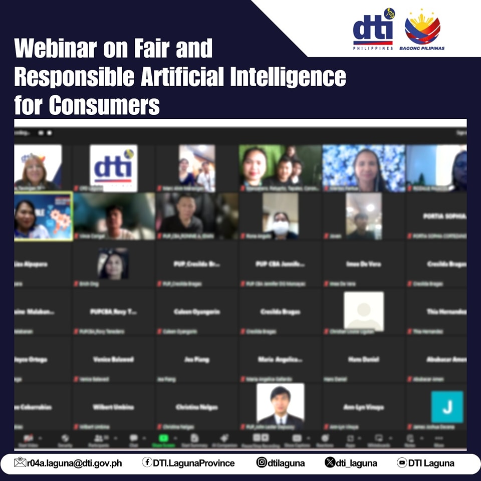 The global voice for consumers, Consumer International has chosen “Fair and Responsible AI for Consumers” as this year’s World Consumer Rights Day theme. The Department of Trade and Industry – Laguna Provincial Office through the Consumer Protection Division observed the year’s March 15 celebration through the conduct of a webinar of the same title. Director Christian Ted Tungohan spearheaded the opening emphasizing the importance of issues faced by consumers in the emergence of AI.