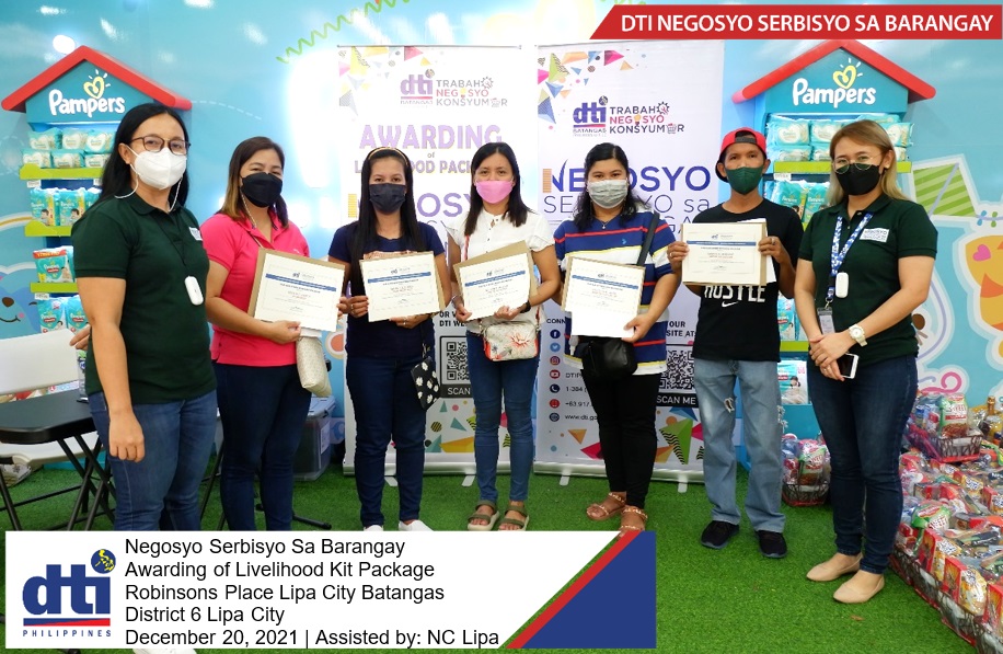 Department of Trade and Industry – Batangas Provincial Office through Negosyo Centers in the province, awarded of the Livelihood Seeding Program – Negosyo Serbisyo sa Barangay (LSP-NSB) livelihood seeding kits to chosen beneficiaries of 50 selected barangays which have been greatly affected by the pandemic. LSP-NSB is one of the DTI programs that aims to help small entrepreneurs recover from the effects of the pandemic situation in the country.