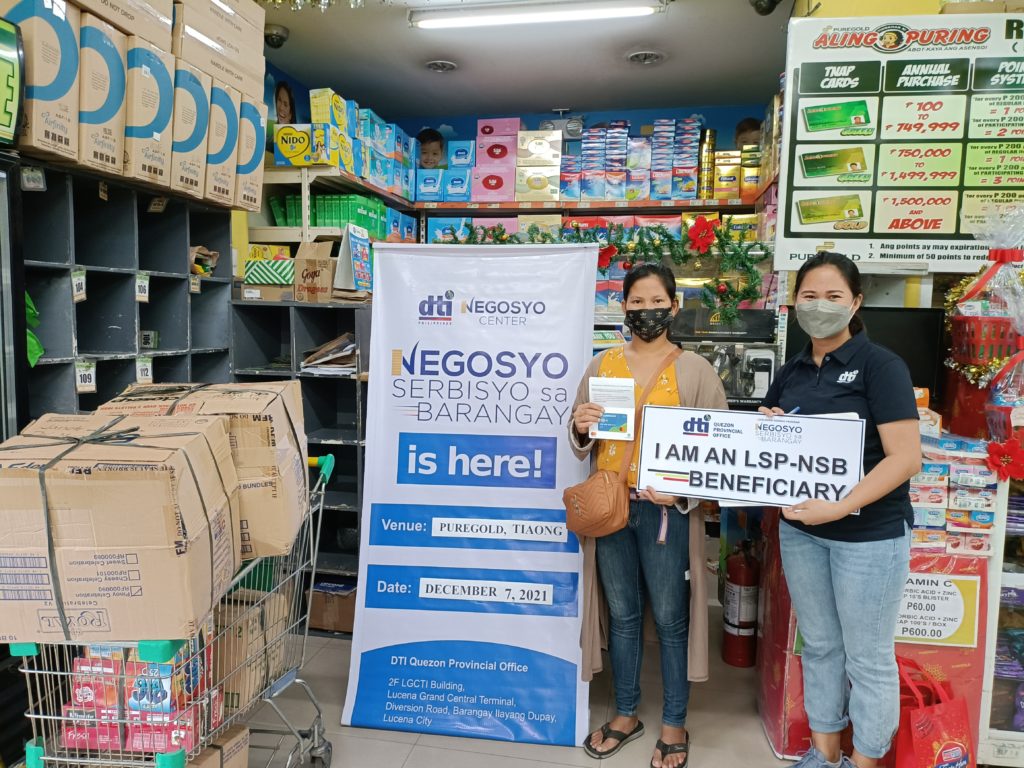 The LSP-NSB Program was launched in March 2021 in Brgy. Bukal and May 2021 in Brgy. Talisay, Tiaong, Quezon. The aim of the said program is to provide wider business development assistance by bringing government services closer to the people through partnerships between relevant local government units and DTI officials. It also aims to provide assistance to the main catalysts of the economy, the micro, small and medium enterprises (MSMEs) that was greatly affected by natural and/or human-induced calamities such as epidemic and pandemic.