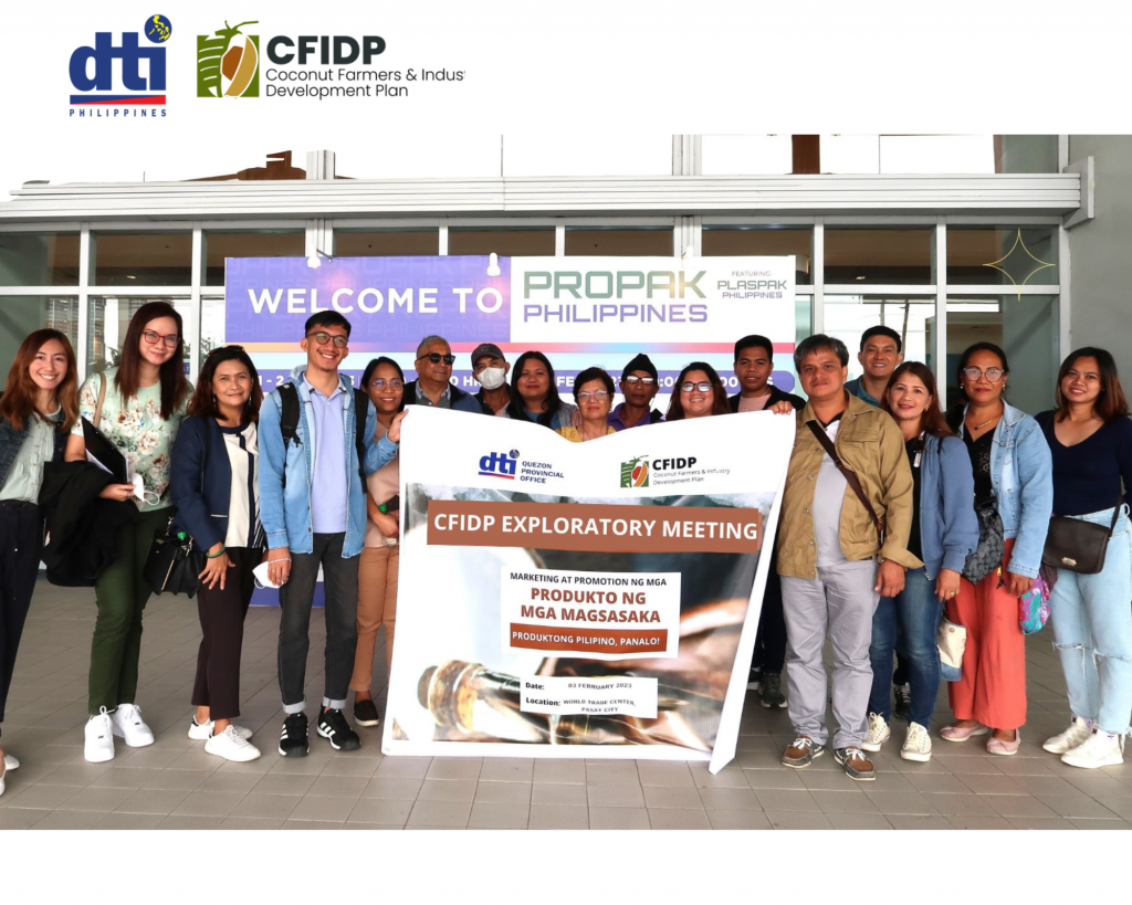 PASAY CITY — On February 3, 2023, DTI Quezon conducted Coconut Farmers and Industry Development Program (CFIDP) Exploratory Meeting with coconut Micro-Small and Medium Enterprises at Propak Philippines in Pasay City, facilitated by TIDS Honeylee O. Eclavea, TIDS Jaryz E. Lloce, CFIDP Coordinator Dara Jannes C. Obmerga, and TIDA Keanu Rairata.
