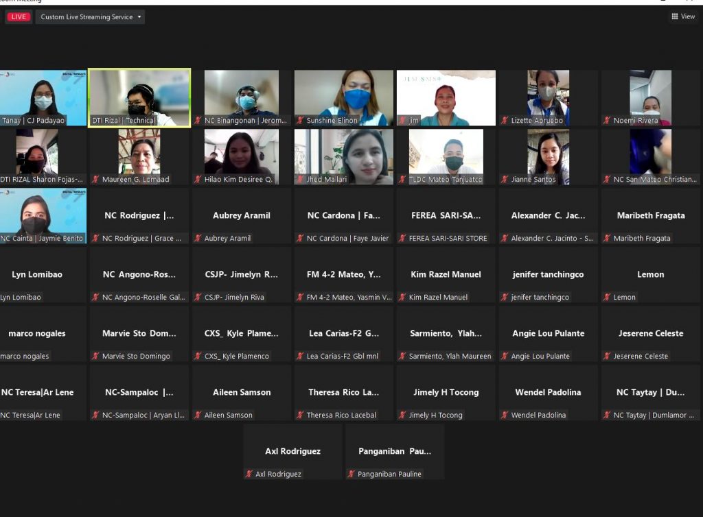 The session aims to engage the MSEs in benefiting from the utilization and promotion of digitalization in their businesses and products. The invited resource-speaker was from the Filipino Online Professional Service Cooperative (FOPSCo) Rizal, Ms. Jimely Tocong. She focused her discussion on detailing different types of technology and discovering new and effective ways to maximize the use of it to gain additional income. Additionally, a total of 74 active participants, consisting of potential and existing SMEs, students from different schools and universities, and government employees, took advantage of this free webinar brought by DTI Rizal and DICT Rizal.