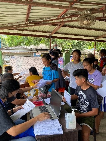 DTI Rizal Business Development Chief Sharon F. Dioco, Trade and Industry Specialist Noralyn SJ. Halimao, and CFIDP Project Coordinator Jerome M. Montealegre teamed-up with Mr. Allan George Gutierrez, Agriculturist from PCA and Ms. Jenna from PCIC and profiled 123 coconut farmers for their registration at National Coconut Farmers Registry System. Said registration is necessary for different assistance they may receive from the government. ♦