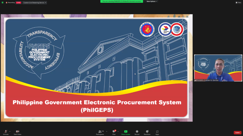 Mr. Brian Nacion Gerona, the Procurement Management Officer V of PhilGEPS Group of Procurement Services, was the webinar’s resource speaker. He began his discussion by outlining the agency’s objectives and its benefits to the government and the public sector. Mr. Gerona discussed the difference between Red and Platinum Membership, User Creation and Red Application, Platinum Membership Requirements and Upgrading, and How to View, Download, Print, and Update the Certificate.