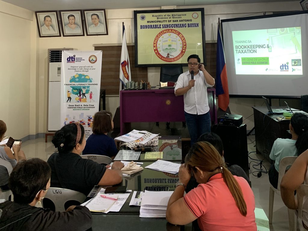 SAN ANTONIO, QUEZON — The Department of Trade and Industry through Negosyo Center (NC) San Antonio, in cooperation with the Local Government of San Antonio, Office of the Municipal Agriculturist, and Tourism, Heritage Development, Culture, and Arts Section of San Antonio, conducted the “Financial Literacy Training” last May 5, 2023, at Sangguniang Bayan Hall, Barangay Poblacion, San Antonio, Quezon. The training intends to help MSMEs learn how to assess their financial reports and develop plans to increase their financial stability, particularly with regard to inventories and receivables. As well as to know and practice the technical know-how in profit planning.