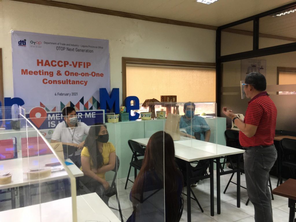 On 4 February 2021, DTI-Laguna facilitated a one-on-one, face-to-face consultancy session with Laguna OTOPreneurs to monitor their progress on Hazard Analysis Critical Control Points (HACCP) documentation and preparation.