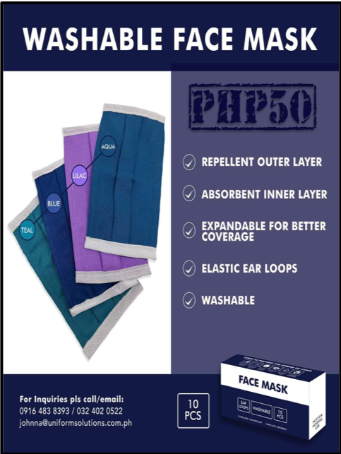“Before Luzon implemented its enhanced community quarantine (ECQ), I got the commitment from one of our suppliers for them to provide the needed fabric for the washable facemasks,” he said.