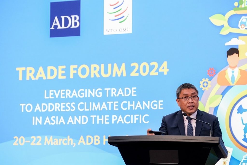 MANILA CITY – At a trade forum organized by the Asian Development Bank (ADB) and World Trade Organization (WTO) on 22 March, Department of Trade and Industry (DTI) Undersecretary Allan B. Gepty, who represented DTI Secretary Fred Pascual, highlighted the potential of trade policy as a powerful tool in tackling climate change.