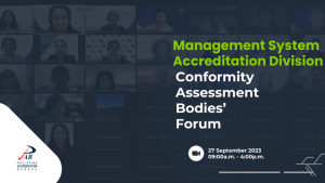 DTI-PAB Convenes CBs and Features ISO 21001 StandardOctober 03, 2023The Philippine Accreditation Bureau-Management System Accreditation Division (PAB-MSAD) convened its Conformity Assessment Bodies’ (CABs) Forum to further gather insights from accredited and applicant CABs, refine accreditation processes, and introduce a new standard that CABs might be interested in implementing as one of their certification schemes. The online forum was...Read More