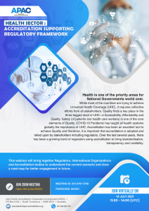 APAC CPC Webinar for Health Regulators on Accreditation, 14 July 2021, 11:00 – 14:00, UTCJune 25, 2021The Department of Trade and Industry – Philippine Accreditation Bureau (DTI-PAB) is pleased to share the invitation of the Asia Pacific Accreditation Cooperation (APAC) to attend the webinar entitled, “Health Sector: Accreditation Supporting Regulatory Framework,” to be held on 14 July 2021, 11:00 – 14:00, Coordinated Universal Time (UTC)....Read More