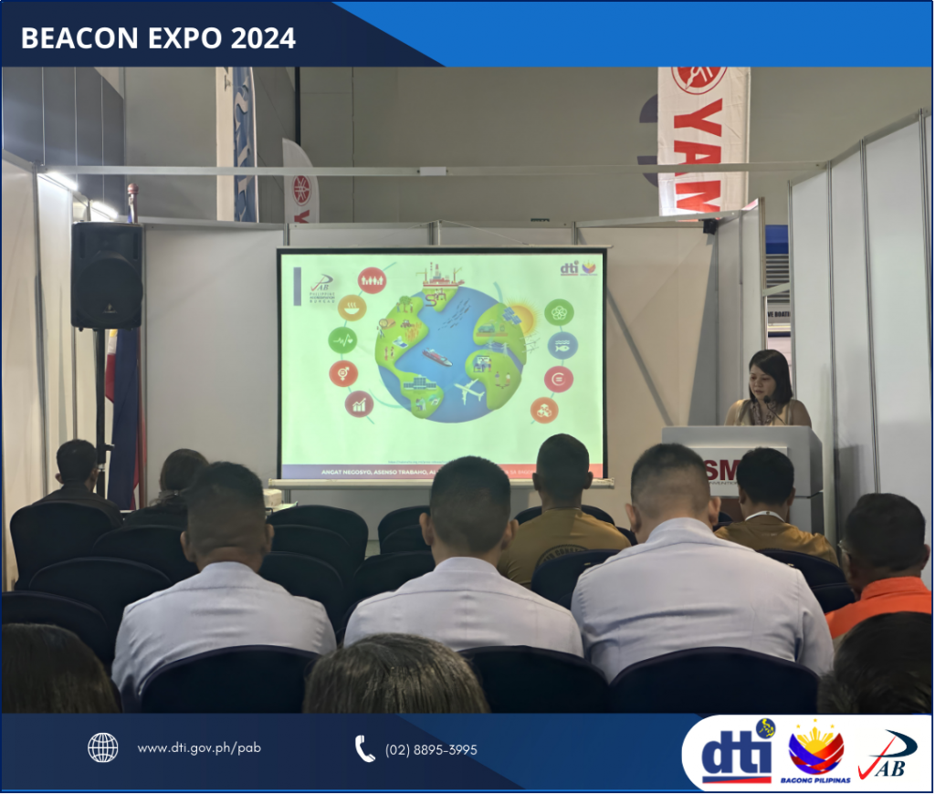The Philippine Accreditation Bureau (PAB) served as one of the technical presenters at the Blue Economy Annual Trade & Conference (BEACON) held on September 30, 2024, at the SMX Convention Center, Mall of Asia Complex, Pasay City. The event brought together key leaders from government, industry, and academia, intending to foster innovation and collaboration in the maritime sector and promote a sustainable blue economy. The BEACON Expo concluded on October 3, 2024.
