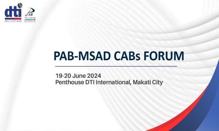 The Philippine Accreditation Bureau (PAB) through the Management System Accreditation Division (MSAD) and Promotion and Documentation Division (PDD) held a highly successful Conformity Assessment Bodies’ (CABs) Forum on June 19-20, 2024 at DTI International Building, 375 Sen. Gil Puyat, Makati City. The event was attended by MSAD’s accredited CABs to discuss latest developments and updates in accreditation and conformity assessment.