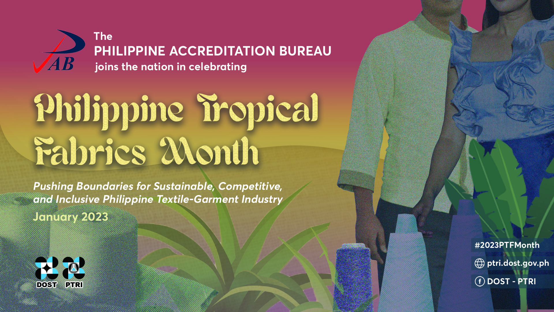 The Department of Trade and Industry – Philippine Accreditation Bureau (DTI-PAB) joins the nation in celebrating the Philippine Tropical Fabrics Month. This celebration is led by the Department of Science and Technology – Philippine Textile Research Institute (DOST-PTRI), one of PAB-accredited testing laboratories on ISO/IEC 17025 (Chemical and Mechanical Testing for Textile and Related Products).