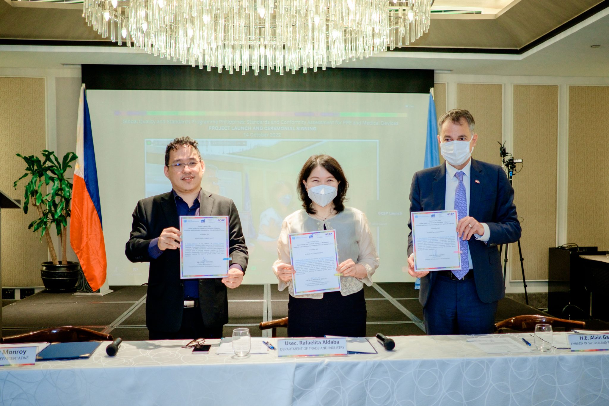 Manila – 14 October 2022, the Department of Trade and Industry (DTI), together with the United Nations Industrial Development Organization (UNIDO) and the Swiss State Secretariat for Economic Affairs, represented by the Embassy of Switzerland in the Philippines, launched the Global Quality and Standards Programme (GQSP) in the Philippines: Standards and Conformity Assessment for Personal Protective Equipment (PPE) and Medical Devices.
