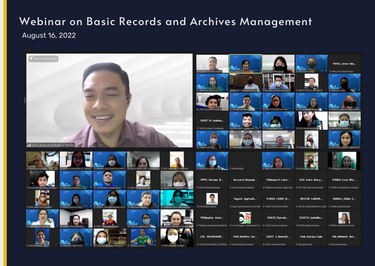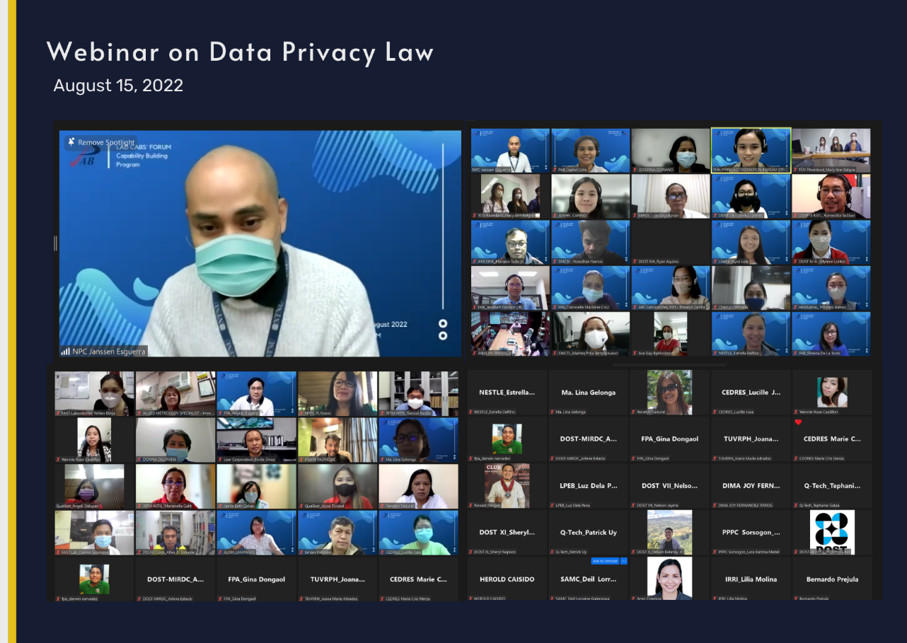 In addition to the CABs’ Forum held on August 15 & 19, PAB also provided its accredited CABs with capacity building program comprising of training/webinars on Data Privacy Law (August 15, 2022), Statistical Tools in the Interpretation of Laboratory Results (August 24-25, 2022), and Basic Records and Archives Management and (August 16, 2022). The Bureau believes that these training programs are essential for CABs to have appropriate knowledge on how they could properly protect the data they obtain from their clients, deliver accurate statistical interpretation, and practice government-prescribed records and management policy.