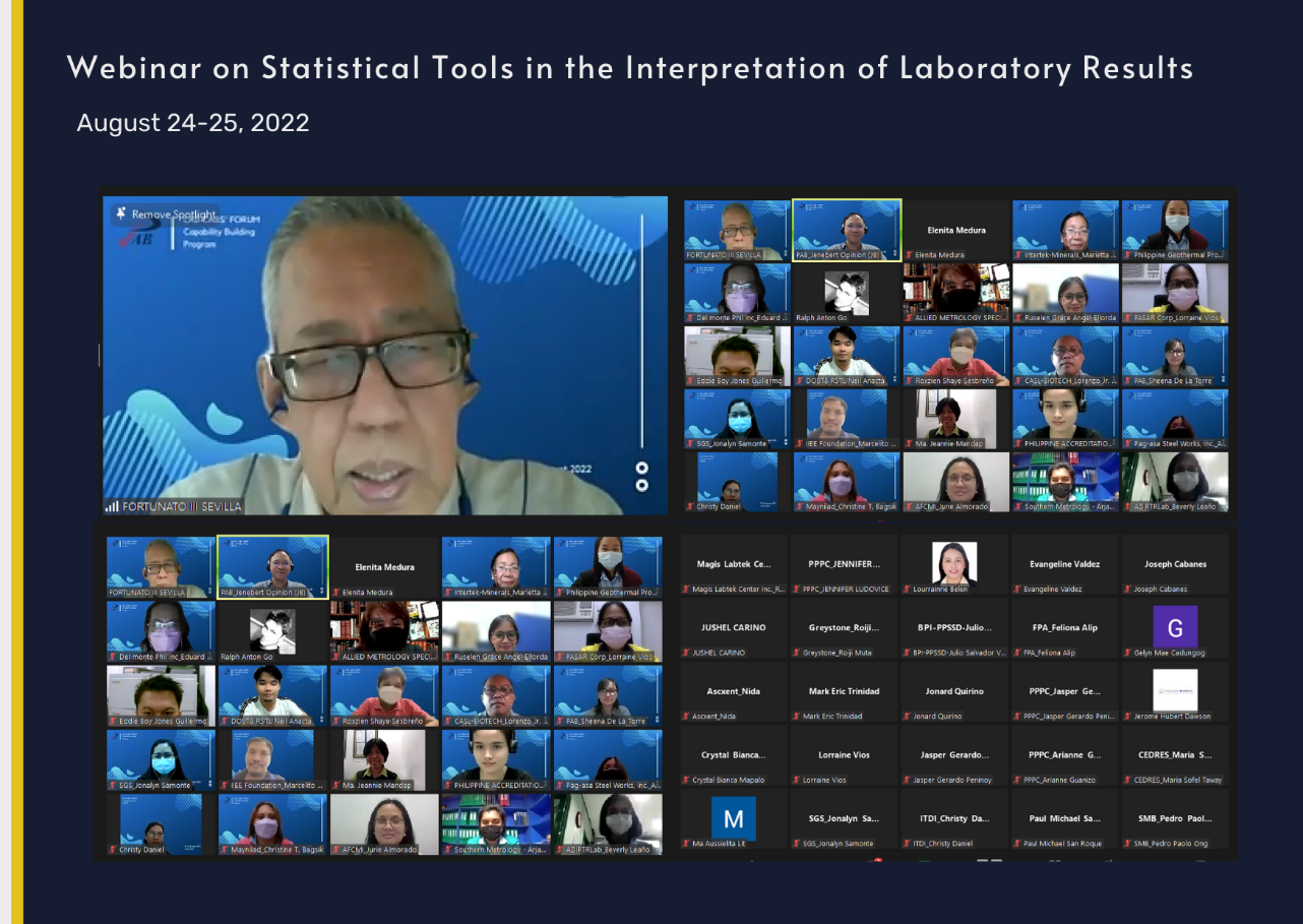 The Laboratory Accreditation Division (LAD) and Promotion and Documentation Division (PDD) held this year’s CABs Forum and Capability Building Program to help PAB’s Conformity Assessment Bodies (CABs) competently perform their conformity assessment functions. The online activities were held to help CABs improve their knowledge and skills, as well as to keep them updated on PAB policies, procedures, and requirements.