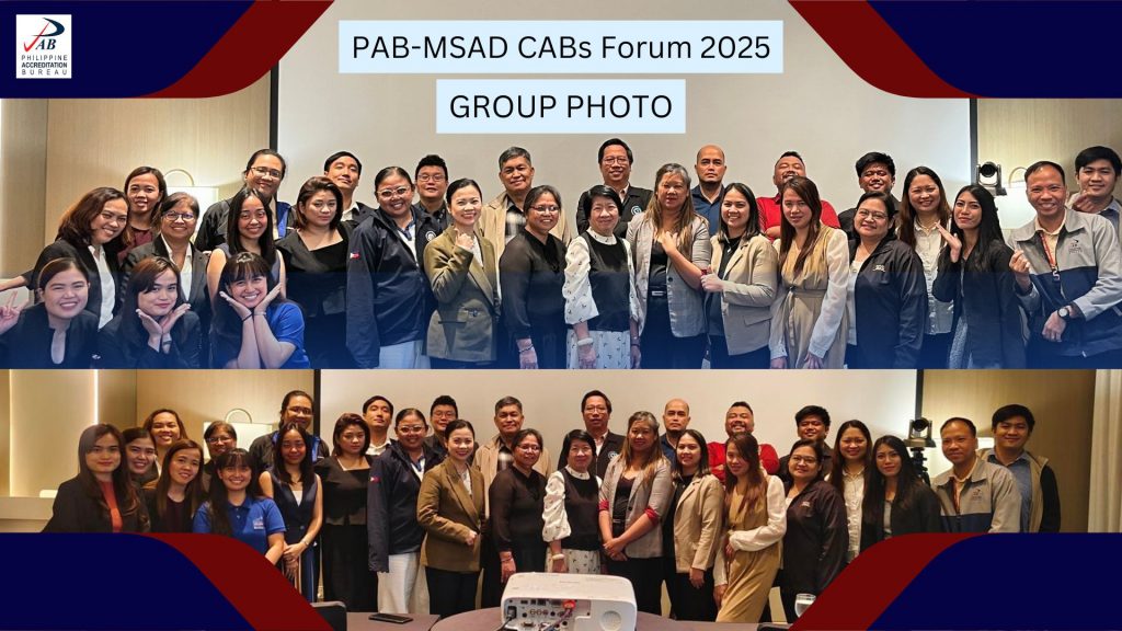 The Philippine Accreditation Bureau-Management System Accreditation Division (PAB-MSAD) successfully conducted its annual Conformity Assessment Bodies (CABs) Forum on 20 March 2025. The event, held at Citadines Roces Hotel in Quezon City, served as a platform for insightful discussions, sharing of best practices, and exploring collaborative opportunities among CABs, aligning with evolving standards and accreditation processes.