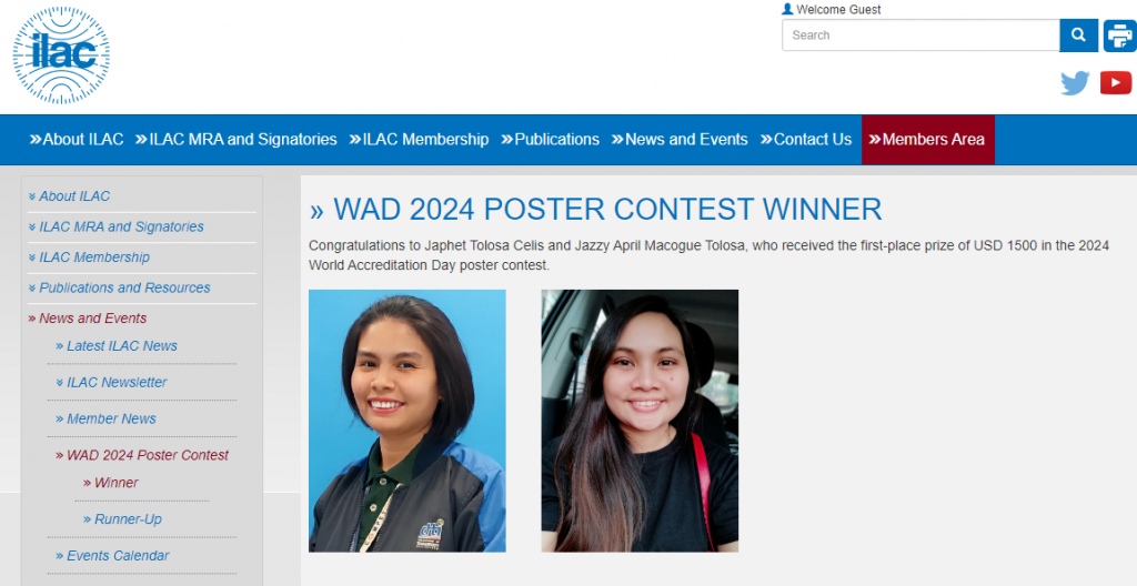 Among the various participants from accreditation bodies and designers around the world, Ms. Japhet Tolosa Celis and Ms. Jazzy April Macogue Tolosa (a freelance graphic designer), representing the Department of Trade and Industry – Philippine Accreditation Bureau, emerged as the victors. Their captivating design effectively embodies this year’s theme and highlighted the crucial role of accreditation in shaping a secure and sustainable future.
