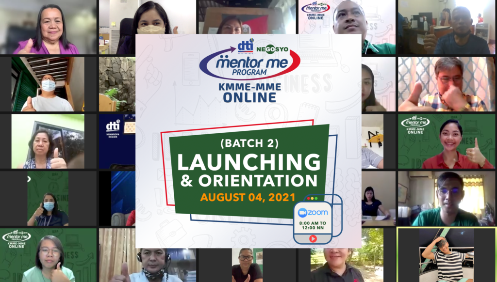 After a successful run of the Kapatid Mentor ME: Money and Market Encounter (KMME-MME) Online Batch 1–multi-sector, DTI-MIMAROPA commenced another batch of the intensive mentorship program, focusing on micro, small, and medium enterprises (MSMEs) in the tourism industry. The launching and orientation program took place via Zoom on 4 August 2021.