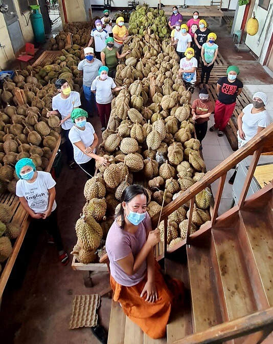 “[My husband and I are] into farming fruit trees like durian, pomelo, mangosteen, and cacao, and we usually sell them as fresh produce,” she says talking about their own family business.