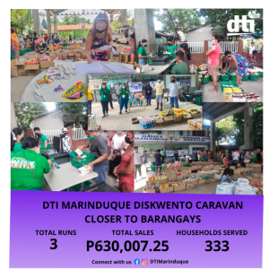 June 09, 2022A total of 333 households have already benefitted from the Department of Trade and Industry’s (DTI) Diskwento Caravans in the province of Marinduque. Diskwento Caravan is a DTI initiative that aims to provide easy access to low-priced basic and prime commodities to the public especially those outside the center...Read More