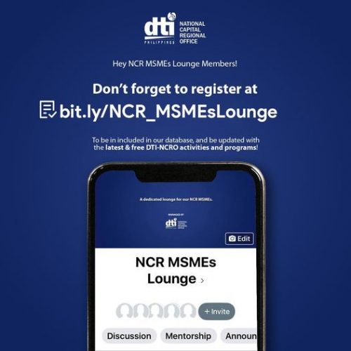Join our NCR MSMEs Lounge Facebook Group to be automatically notified about NCRO programs, activities, and projects at https://www.facebook.com/groups/ncrmsmeslounge! After clicking “Join Group”, answer the Membership Form at https://bit.ly/NCR_MSMEsLounge.