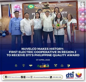 NUVELCO makes history: First electric cooperative in Region 2 to receive DTI’s Philippine Quality Award.