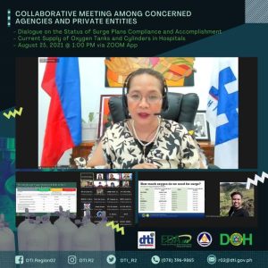 September 06, 2021The Department of Trade and Industry (DTI) Region 2 and Department of Health (DOH) Region 2 spearheaded a dialogue among concerned agencies and private entities in Region 2 via Zoom to strategize a regional response for the possible surge in the demand of medical-grade oxygen in view of the rising…Read More -