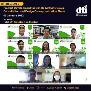 February 04, 2022In line with the product development initiatives for holiday items, the Department of Trade and Industry (DTI) Region 2 held consultations and design conceptualization with select MSMEs for the food sector on 3 January 2022. This activity was centered on refining existing and new potential products of the region that…Read More -