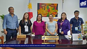February 04, 2022The Consumer Protection Division of the Department of Trade and Industry (DTI) Region 2 spearheaded a dialogue with the National Bureau of Investigation (NBI) Region 2 and the Philippine National Police (PNP) Region 2 on 24 January 2022 for a possible collaboration in enforcing consumer laws online. The dialogue was…Read More -