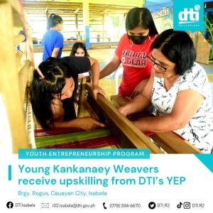 July 27, 2022To further upskill the indigenous weavers of Cauayan City, the Department of Trade and Industry (DTI) Region 2 Isabela Provincial Office conducted a three-day Enhancement Skills Training to the Young Kankanaey Loom Weavers (YKLW) of Barangay Rogus, Cauayan City on 4-6 July 2022. The activity, with the theme “Istilong Pinoy:…Read More -