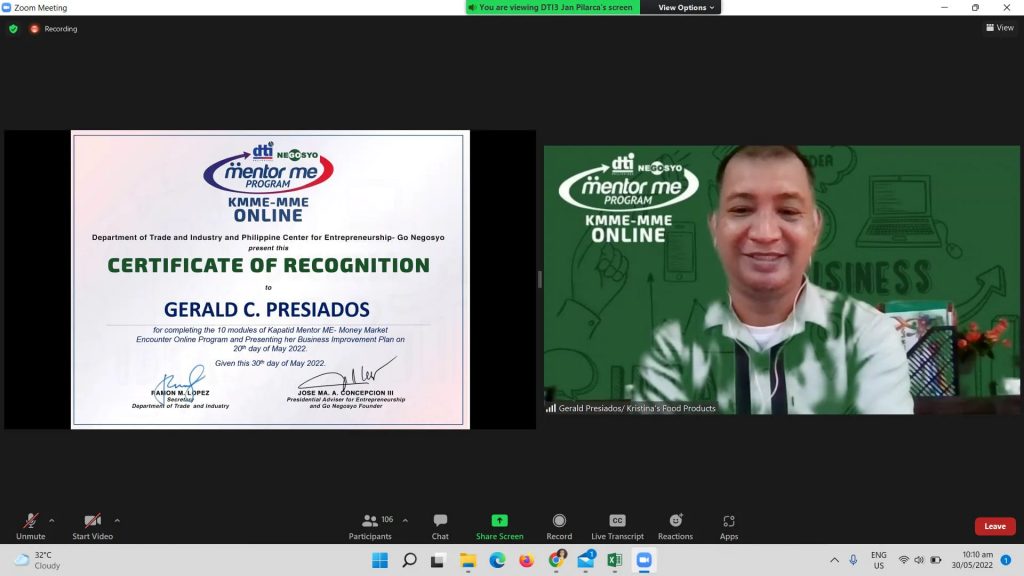 Gerald is very responsive when it comes to the programs and projects implemented by DTI. He joined Kapatid Mentor ME (KMME) in 2022. KMME is a coaching and mentoring program where owners of big companies train micro and small enterprises. Through the program, Gerald learned all of the facets of running his business.