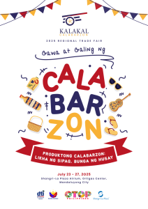 July 02, 2025The Department of Trade and Industry Region 4-A (CALABARZON), in partnership with its Provincial Offices in Cavite, Laguna, Batangas, Rizal, and Quezon, is set to host the 12th Kalakal CALABARZON: Gawa at Galing ng CALABARZON with the theme “Produktong CALABARZON: Likha ng Sipag, Bunga ng Husay.” The event will take…Read More -